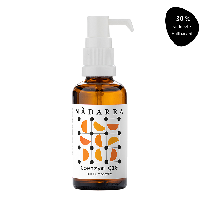 Coenzym Q10 - 10 Pumpstöße enthalten 100 mg Coenzym Q10 als Ubiquinon in nativem Olivenöl für eine gute Bioverfügbarkeit. 50 ml von Nàdarra.