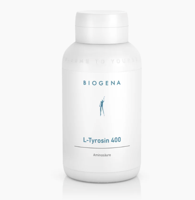 Hochkonzentriertes, reines Mikronährstoffpräparat aus der nichtessentiellen Aminosäure L-Tyrosin. In optimal bioverfügbarer & bioaktiver L-Form. 400 mg reines L-Tyrosin pro Kapsel. 120 Kapseln von Biogena.