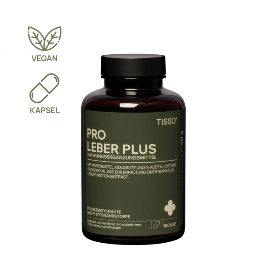 Sanfte Unterstützung für Leber & Fettstoffwechsel: 8 Pflanzen, darunter bewährte Bitterpflanzen, sowie N-Acetyl-L-Cystein und Glycin; plus Cholin zur Unterstützung der Leberfunktion und Selen als Zellschutz. 180 Kapseln von TISSO.