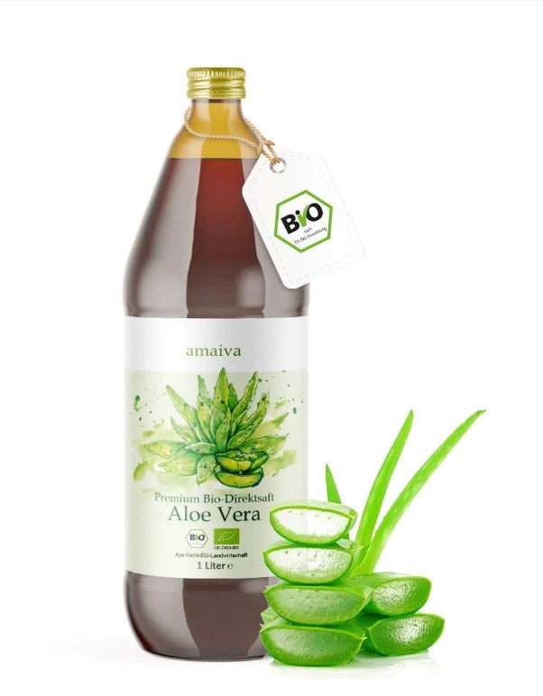 Bio Aloe Vera Saft - Premium Direktsaft mit 1.200 mg Aloverose, 1 Liter von amaiva