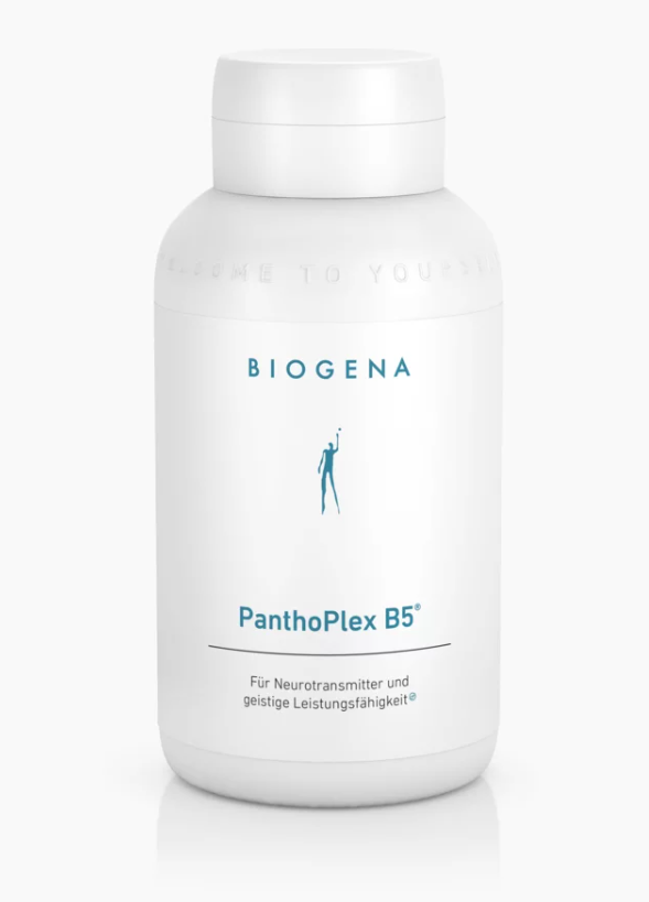 Kombinationspräparat mit hohem Gehalt an Pantothensäure (Vitamin B5), eingebettet in einem B-Komplex + Cholin, 120 Kapseln von Biogena.
